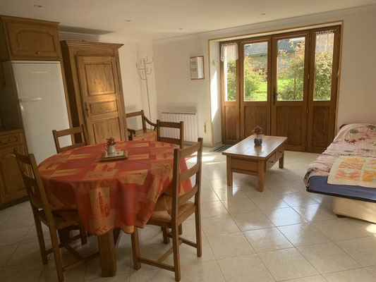 Nous possédons un gîte à 300 m du jardin du Centaure, à l'adresse "9 les Bournas". C'est un ancien fournil aménagé, d'environ 45 m², avec à l'étage une chambre (avec un lit double), un W-C et une salle de bain. Au rez de chaussée, une seule pièce fait office de cuisine et de pièce à vivre, avec un canapé convertible. un lit-parapluie pour un bébé est disponible. Les draps, serviettes de bain, torchons, savon, produits ménagers sont fournis.
